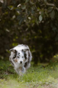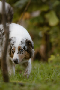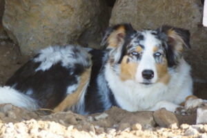 Nach einer umfassenden tierärtzlichen Untersuchung und Behandlung, Erfahrung, richtiger Ernährung, Liebe und Geduld hat sich Pamirah nach etwa 8-10 Wochen in das Rudel eingelebt und gut erholt. Die anfänglichen Juckattacken verschwanden zunehmend und auch den quälenden Pilz im Ohr bekamen wir langsam in den Griff. Das Fell wurde in den darauffolgenden Wochen zunehmend weicher und begann langsam einem gesundem Australian Shepherd zu entsprechen.